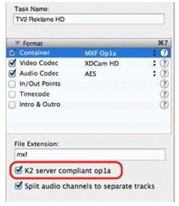 Preset with the right TV2_MediaEncoder_Preset.epr settings to comply with the TV 2 specifications.