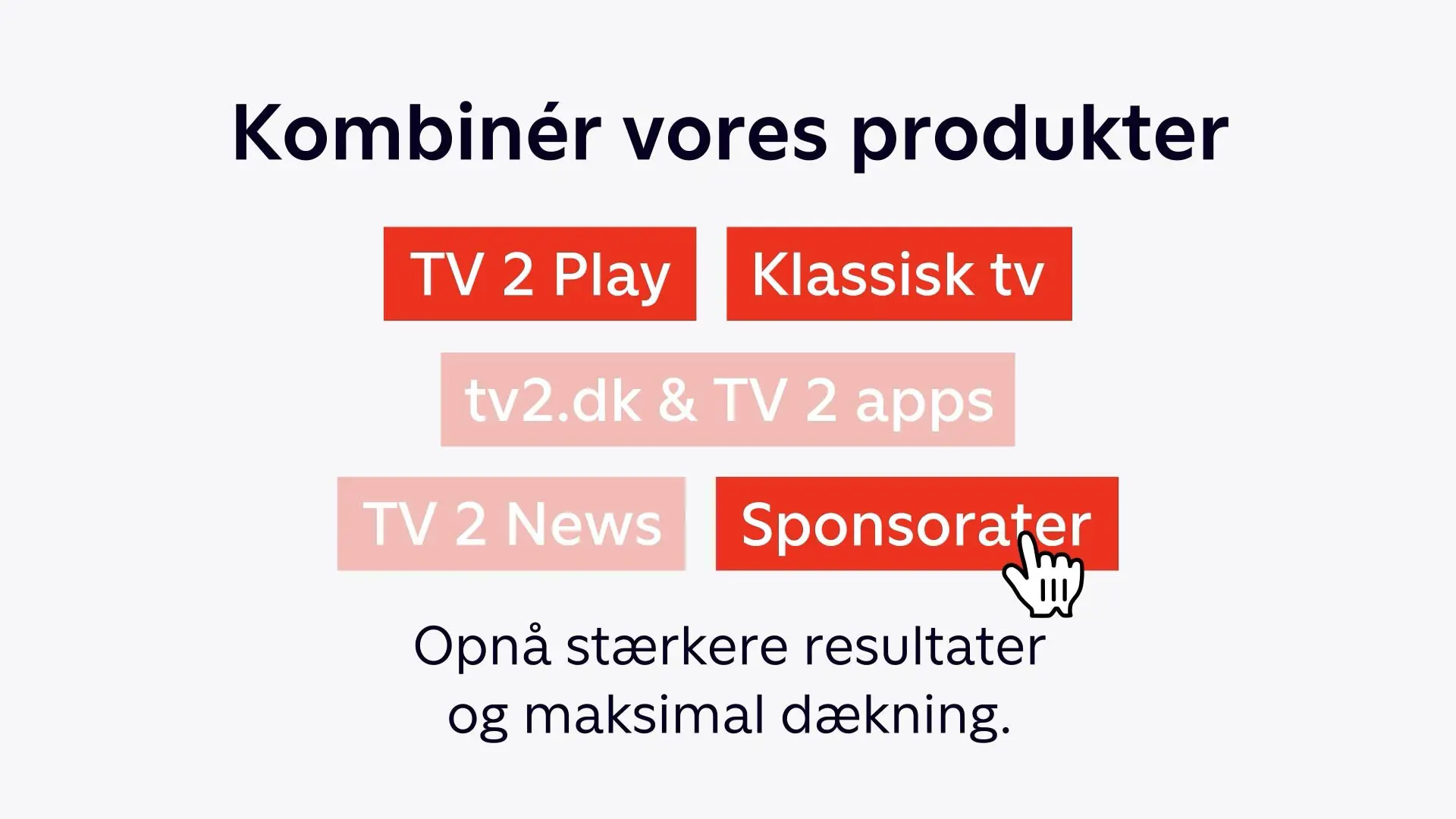 Med TV 2s avancerede målretningsmuligheder kan du præcist nå de brugere, der er mest relevante for din kampagne. Det betyder, at dit budskab vises for de rigtige abonnenter– på det rigtige tidspunkt – og sikrer mere effektive kampagner med mindre spild og stærkere relevans