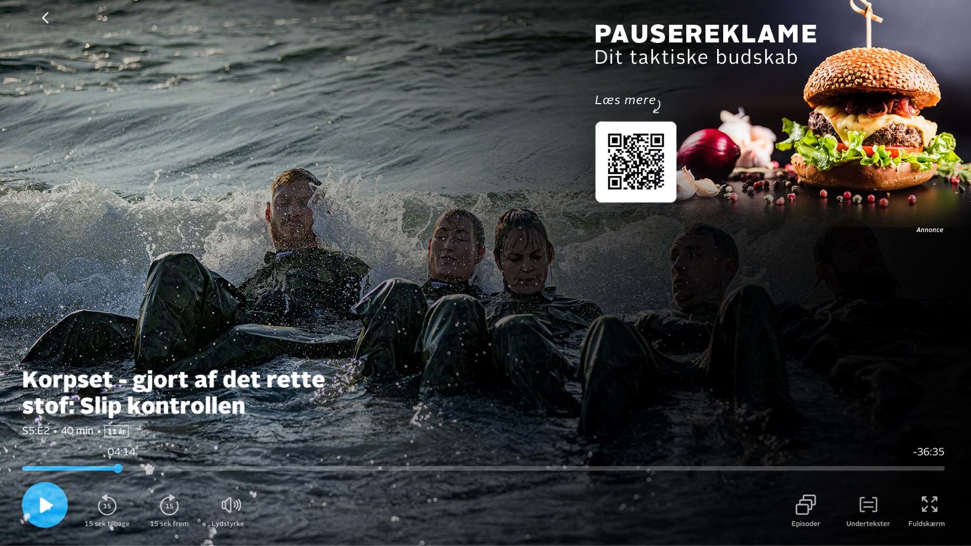 - Muligt call-to-action på stor skærm: Som annoncør kan du inkludere en QR-kode i pausereklamen og dermed introducere call-to-action uden begrænsning af, at indhold streames i stort format. Her bibeholdes kvaliteten af streamingoplevelsen, mens flere brugere kan ledes videre til jeres hjemmeside eller app via sekundær device.
